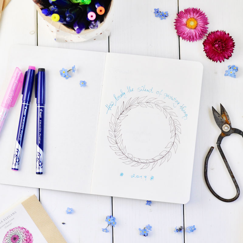 Eine sehr praktische Begleitung sind dabei die tollen Frixon-Stifte von PILOT. Gerade bei meinen Lettering-Versuchen mag ich darauf nicht mehr verzichten. Seit April gibt die Frixon-Fineliner in 12 Farben! Ideal für mein Gartenjournal, denn auch die Fineliner lassen sich wie alle Frixons einfach wegradieren. Und das ziemlich sauber!! Vielleicht traue ich mich dann auch mal an ein Bullet Journal! Das habe ich bisher eher vermieden, da ich mich gerne verschreibe und vermale und keine Lust auf den Frust hatte.