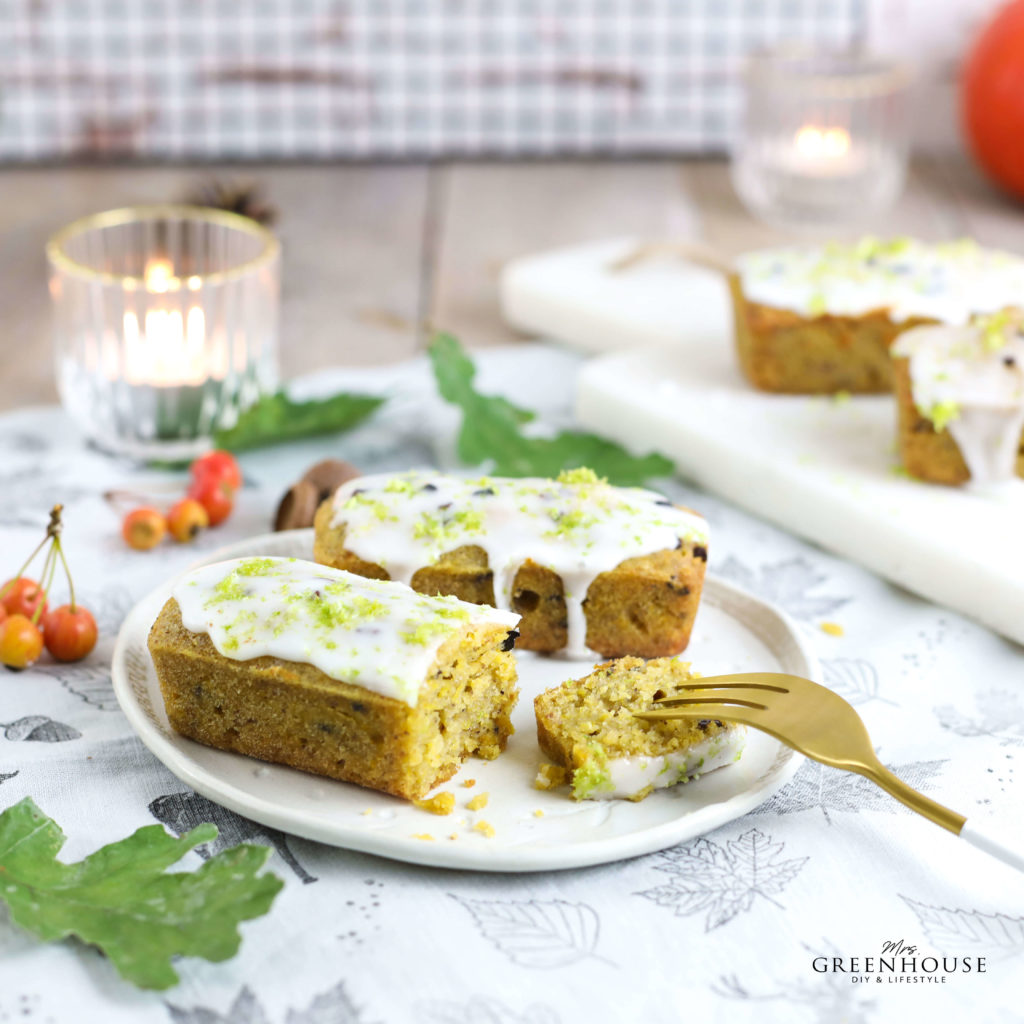 Was ich an diesem Rezept besonders mag ist, dass die Mini Kuchen durch den Kürbis schön saftig sind und durch die Haselnüsse und den Zimt einfach ein schönes Aroma haben. Zusammen mit dem Limetten-Zuckerguss eine tolle Kombination.