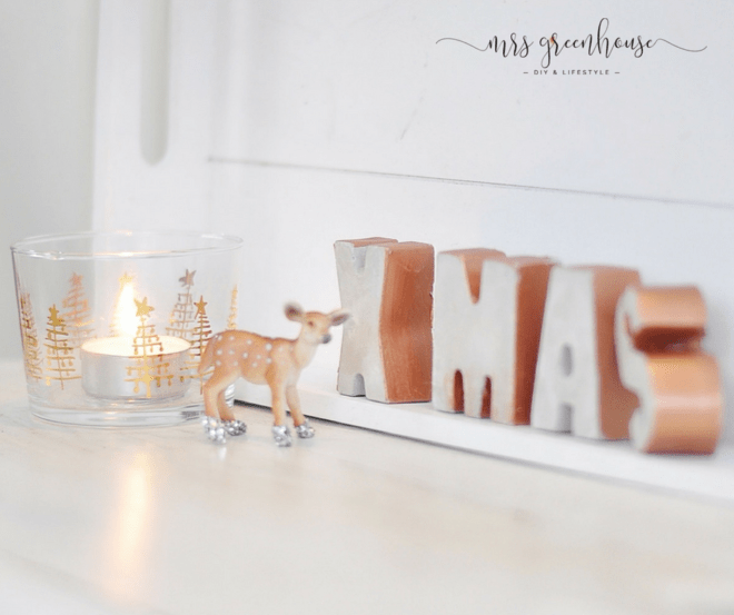Weihnachtliche Tischdekoration mit Betonbuchstaben