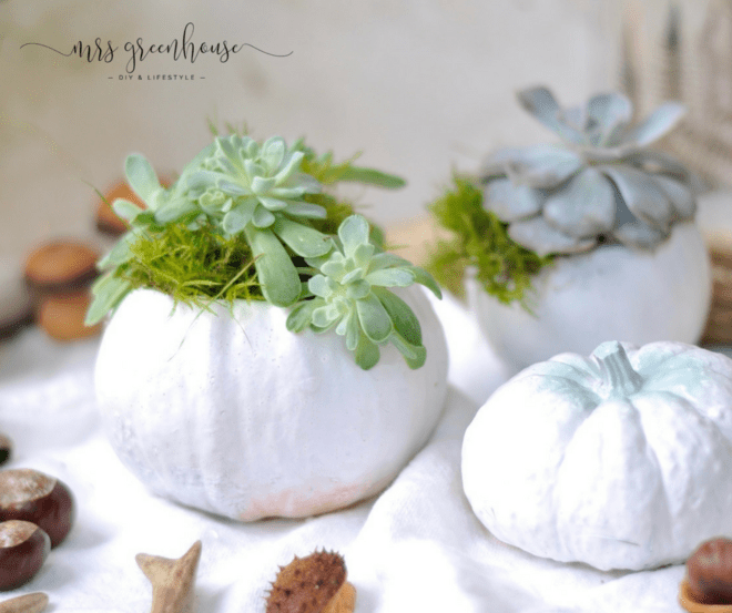 Herbstliche Tischdeko – ein Sukkulentengarten im Kürbis