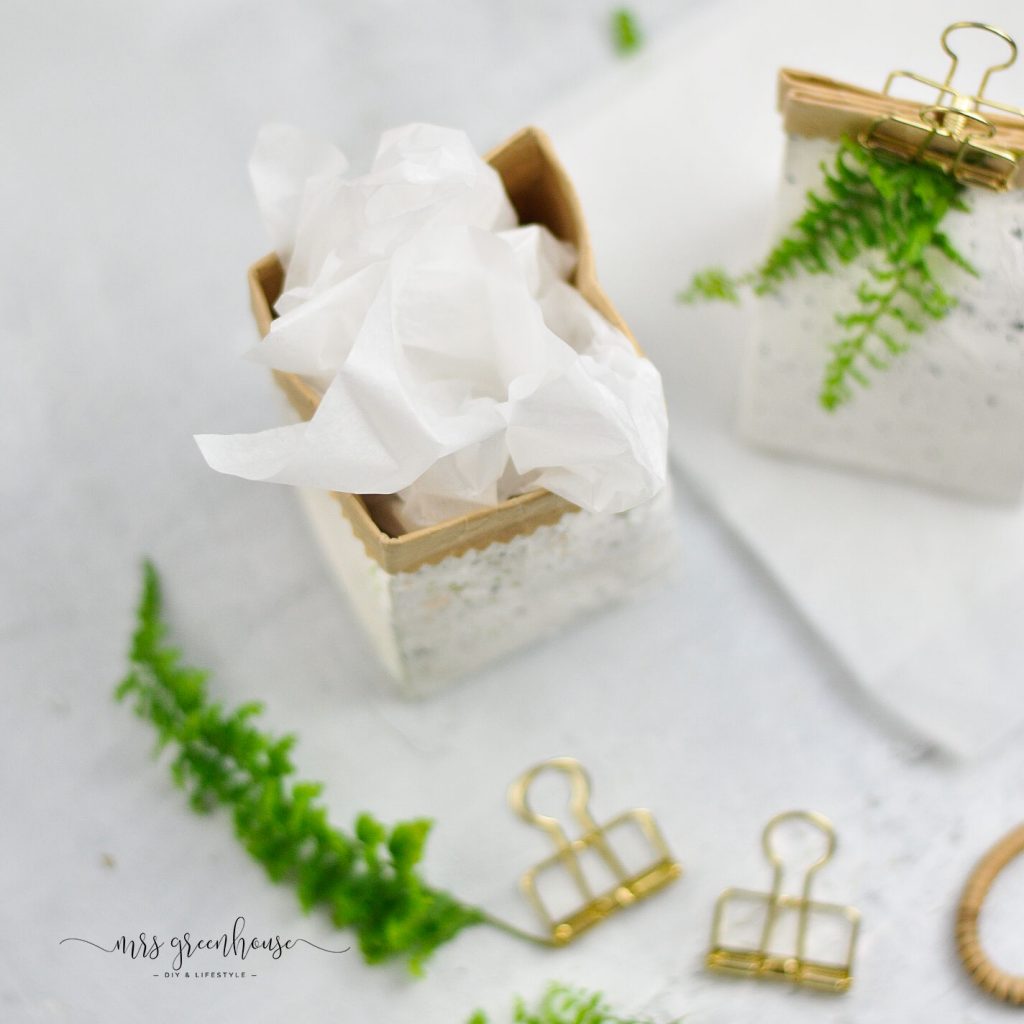 Tetrapack Upcycling – Milchtüten mit Sprenkelmuster als Geschenkverpackung verlinkt im creadienstag