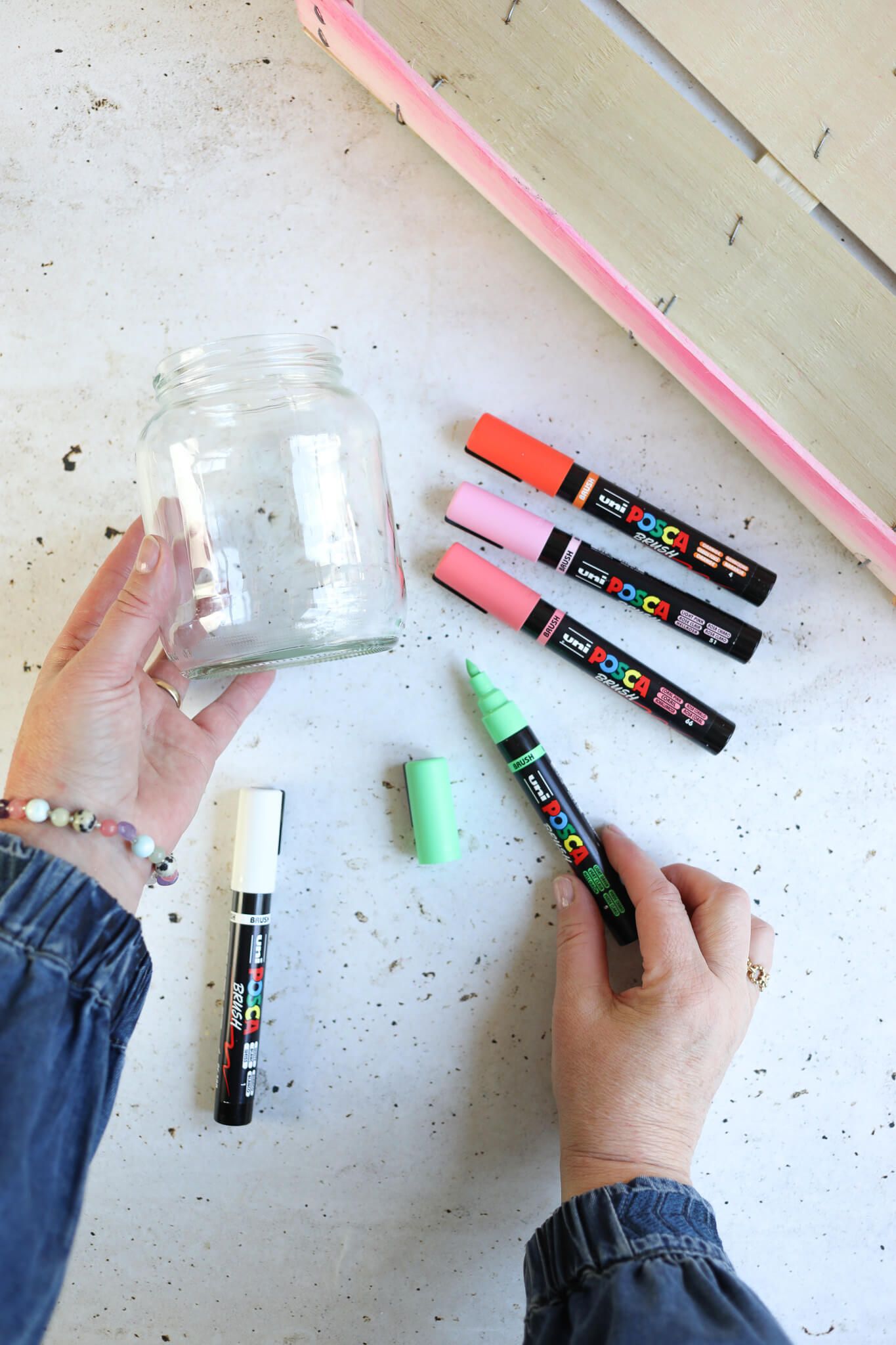 Ich liebe solche DIY-Projekte, weil sie kreativ, nachhaltig und persönlich sind. Aus einer alten Obstkiste und ein paar Marmeladengläsern entsteht mit den Farben von POSCA ganz schnell ein wunderschönes Ostergeschenk.